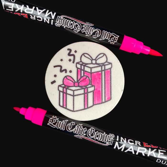 For those of you who are a little less aggressive, you can use them to write and draw on sugar pastes, white chocolate, meringues, glazed cookies, and hard icings. Use the fine tip to write and draw, and use the thicker brush tip to fill in colour smoothly and perfectly just like a brush!