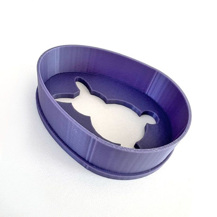 This egg cutter is an essential for Easter. It is the perfect size for our egg cookie icing sheets (see related products) or flip the cutter over to emboss that adorable bunny on any shortbread or non -rising dough, and cut out little embossed egg cookies.