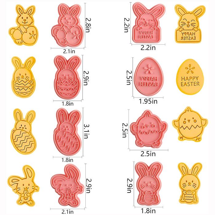 This adorable set of cutters and embossers make the perfect little treats for the Easter! Perfectly suited for Paint Your Own Cookie party favours! Use these to emboss shortbread cookies, but the detail will not show up well if your recipe rises at all, so do not attempt it with sugar cookie dough!! Test your recipe before counting on the details to show up!!