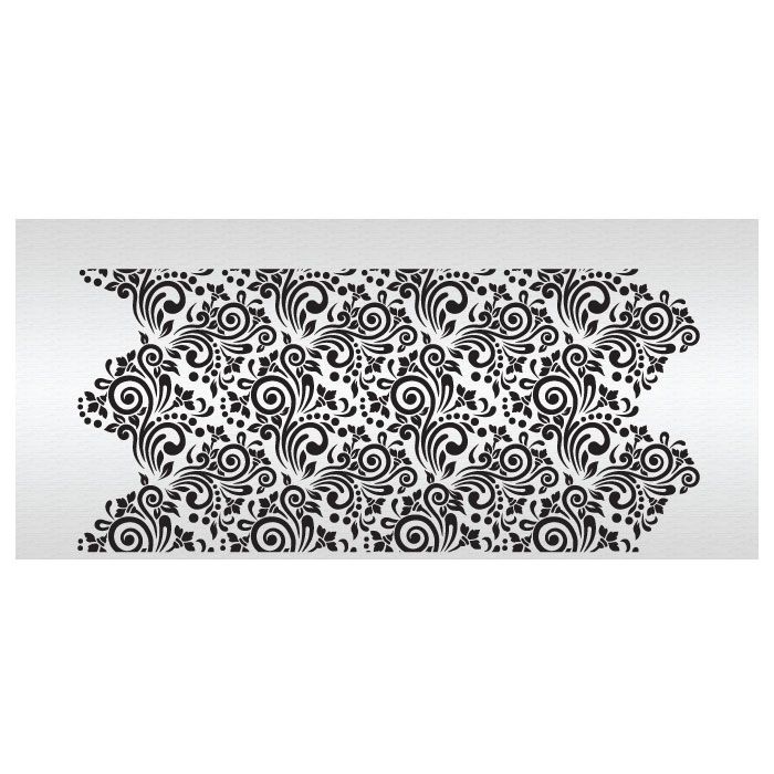 When you need just enough swirls and curls to make a statement tier, but don't have three days to hand-pipe them. This Floral Filigree stencil by Julie Deffense is just what you need! Acrylic stencil measures 7" tall by 15-5/8" wide and lines up seamlessly side to side.