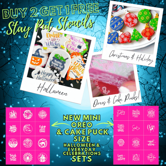 Stay Put Stencils are washable and reusable, and we've laid them out in sheets that can be cut apart into either 6 or 12 cookie stencils for one amazing price!