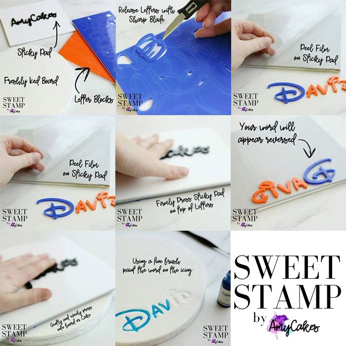 With SWEET STAMP by AmyCakes you can easily emboss your message or name then paint. No more messing around with frustrating and time consuming cutters or struggling to find modern and elegant lettering.